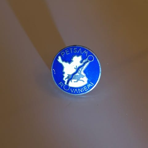 Rovaniemi-Petsamo ruuvimerkki,emalissa hieman vikaa, halkasija noin 18mm.