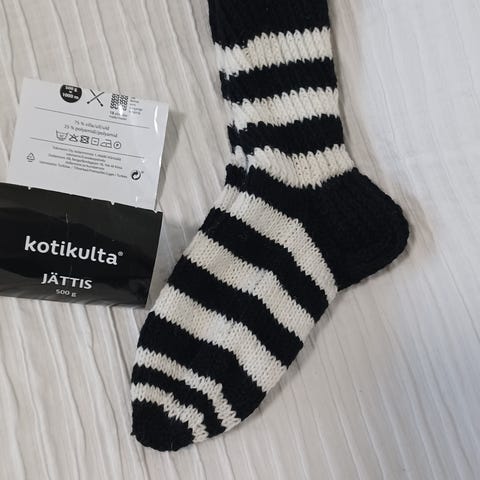 Kotikulta sukkalangasta käsinkudottu villasukat, 75 %villa ja 25 polyamidia, konepestävä. Vahvistettu kantapää, uudet, koko 45 ja varr.pituus noin 34 cm. Postitus onnistuu. MMM.