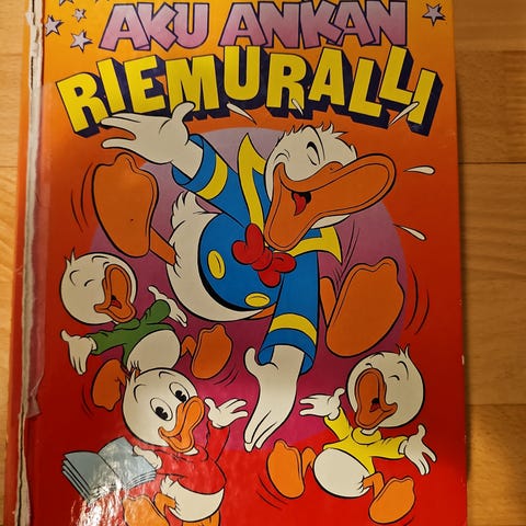 Aku Ankan Riemuralli sarjakuvakirja, eka painos joka julkaistu vuonna 1987. Ihan suht hyvässä kunnossa, hieman on käytön jälkiä jotka näkyy kuvissa.