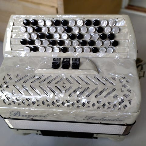 Kuvien mukainen Bugari harmonikka myynnissä. Isäni käytössä ollut, varmasti hyvässä kunnossa. Silmäterä ollut ja huolellisesti pidetty, soiteltu vain kotona.