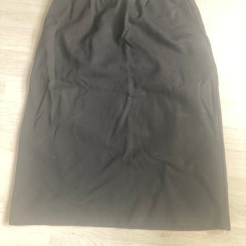 Musta-harmaa kuvioinen Nanson vähän tukevampaa kangasta oleva trikoohame, jossa ohut vuori, joten laskeutuu kivasti.