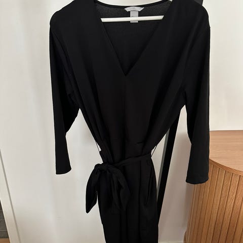 H&M Musta naisten kudottu mekko, koko L. Mekko, laajalla kaula-aukolla, on valmistettu pehmeästä materiaalista ja sopii erilaisiin tilaisuuksiin ja arkipukeutumiseen.