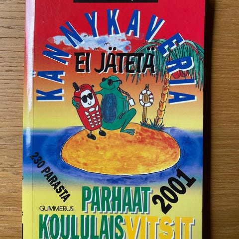 Ensimmäisellä aukeamalla omistuskirjoitus, muuten siisti vitsikirja.