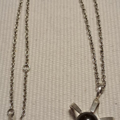 Elis Kaulin riipus savukvartsilla vuodelta 1960. Riipus 813 hopeaa, ketju ei ole alkuperäinen mutta 925 hopeaa. Ketjun pituus 44cm, riipuksen koko 2.6 x 1.3cm