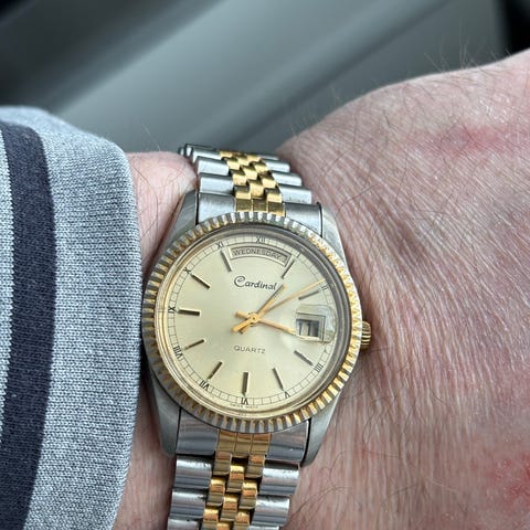 Harvinainen LED-kello. Kellonaika, päivämäärä ja sekunnit tulevat näytölle painiketta painamalla. Yksi teräsranneke ja kaksi kuorta, joissa molemmissa oma koneisto. Kellot myydään yhdessä, ja näistä toisen koneiston toimivuus testattu. Uudet nappiparistot. Pelkät kellot, ei alkuperäistä laatikkoa tai papereita.
