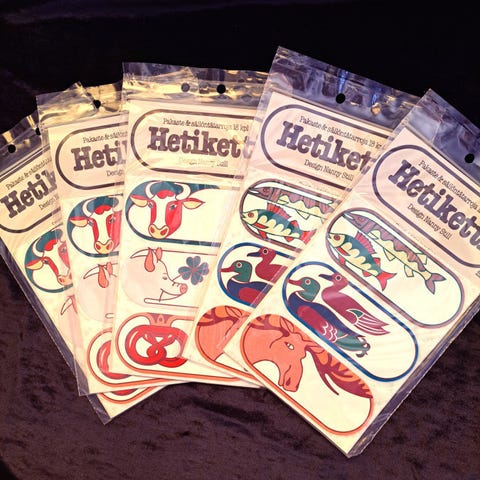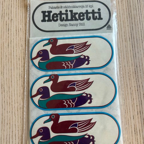 Näitä tarroja valmistettiin useilla vuosikymmenillä, nämä uusinta painatusta ja edelleen kauniin valkoisia, suunnittelija Nanny Still.