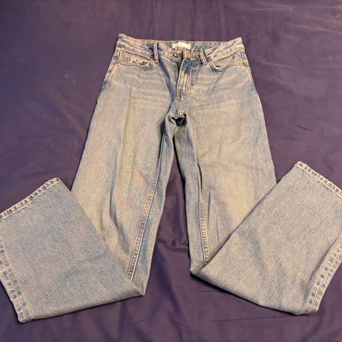 Käytetyt suorat farkut Gant, koko 28/32, joka on lehennetty pituudelle 164 cm.