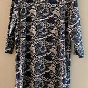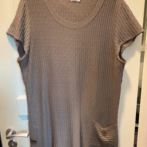 Erinomaisessa kunnossa oleva Miia Halmesmaa mekko. Koko XXL. Materiaalilappua ei löytynyt, kangas jonkinlainen sekoitekangas. Väreinä liila ja ruskean sävyt.