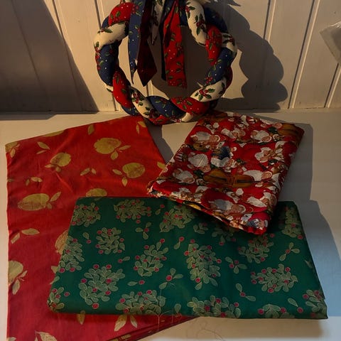 Aurinkokulman kangaskassi tonttupainatuksilla. Koko noin 40 x 40 cm. Valkaisematonta lakanakangasta. Savuton ja lemmikitön koti.