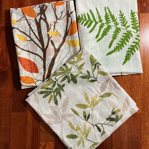 Ompeluinnostuksen ollessa kadoksissa kangaskaapin tyhjennyksenä punasävyisiä kangaspaloja. Vaikeasti kameraan tallentuvat värit. Kuvattu puhtaanvalkoisen paperin kanssa, niin voit arvioida värisävyjä hieman paremmin ruudullasi. Pyydä tarvittaessa lisäkuvia/tietoja
