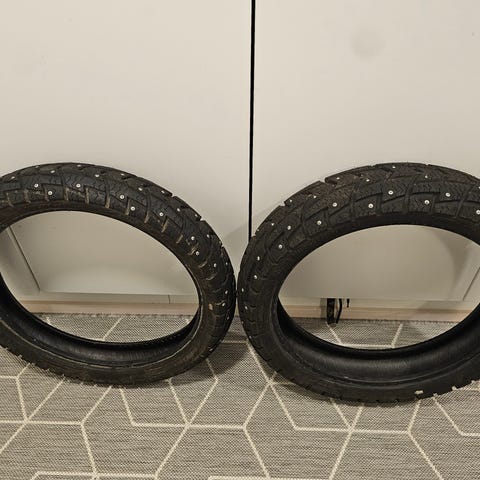 Hyväkuntoiset nastakumit 130/70 r17 mitas ja 3.00 r 17 chengshing