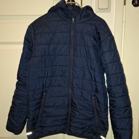 Miesten talvitakki koko L. Toisen kainalon sisäsauma auennut, ei vaikuta käyttöön. Ulkoisesti siistissä kunnossa, ainut moite, pieni purkauma toisen hihan heijastimessa. Nouto Penttilä.