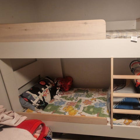 Hyvässä kunnossa oleva vakaa lasten valkoinen kerrossänky.