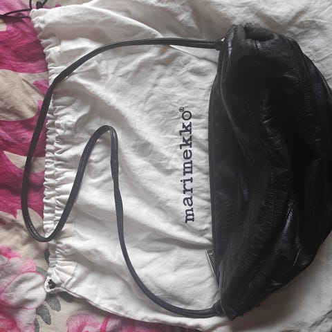 Myydään musta Marimekon Karla avaimenperä/kukkaro - vetoketjullinen pussukka.
