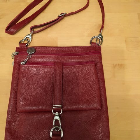 Hyvälaatuinen, Italialainen laukku aitoa nahkaa. Laukun koko 37/28/12 cm. Merkki: LSL Italia. Kolmeosainen. Hopea väriset metalliosat. Nouto tai postitus.