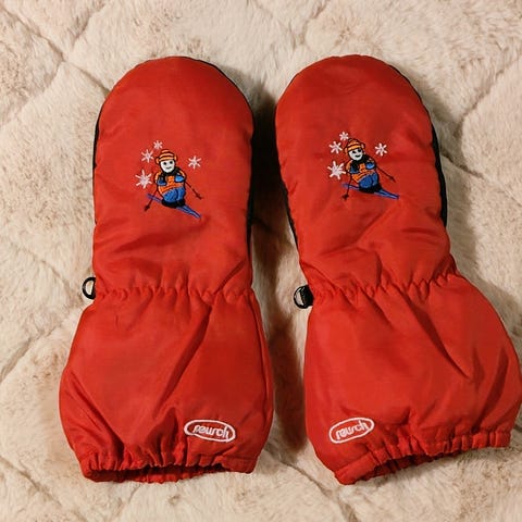 Punaiset lasten rukkaset, sopii koko 4v.-8v., unisex. Rukkasissa on tummat kämmenosat ja ne on varustettu tekoturkisreunuksella. Soveltuvat lasten käyttöön kylmiin olosuhteisiin.