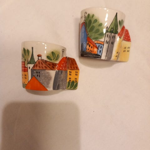 Helina Tilk Hand Painted Ceramic Demitasse Cup Europe Tallinn town scene city