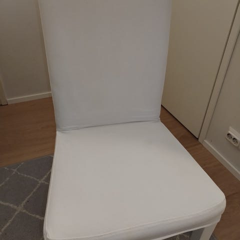Kaksi käytettyä, hyväkuntoista sinistä Ikean Henriksdal tuolinpäällistä.