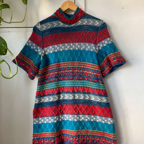 Hakusanat: tyköistuva, istuva, hoikka, minimekko, 70-luvun, 60-luvun, neulemekko, neulos, ohut villakangas, vintage, vintagemekko, retro