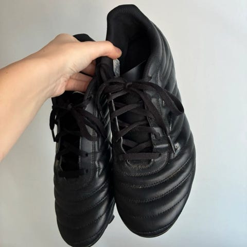 Adidas Jalkapallokengät koko 44, värit musta ja keltainen. Kengät on suunniteltu jalkapallon pelaamiseen ja niissä on kumipohja, joka tarjoaa hyvän pidon kentällä.