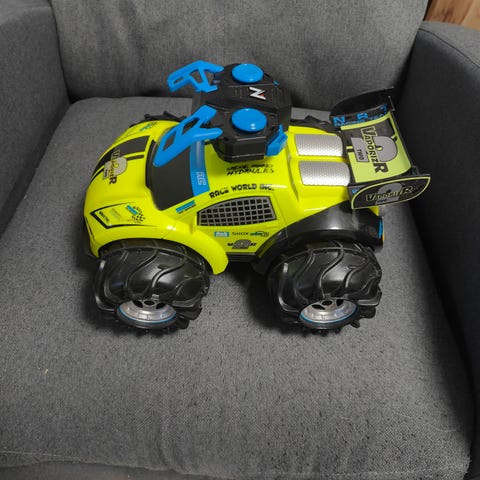Radio-ohjattava moottoripyörä, liikkuu eteen taakse keulii ja kääntyy. Itsellä jäänyt täysin käyttämättömäksi joten nurkista pois pyörimästä.