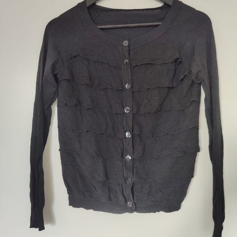 Myydään harmaa villatakki merkki HM ja kirjava hihaton pusero.Kummassakaan ei ole koko lappua, mutta vastaa kokoa M.