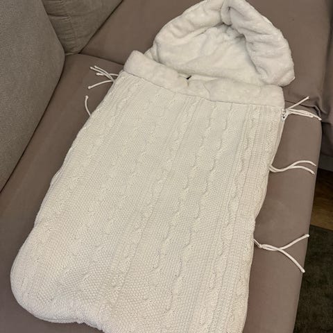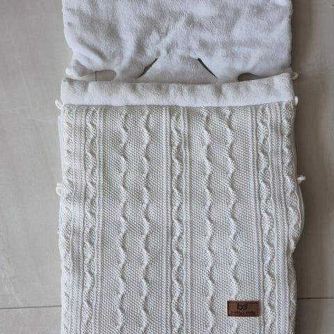 Kaunis neulottu, pehmeä ja lämmin neulepussi vauvalle esim. rattaisiin tai turvakaukaloon. Oli vähällä käytöllä, koska muutettiin kesken talven ulkomaille.
