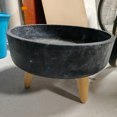 Musta iso keraaminen kukkaruukku. Pohjassa reikä veden valumista varten.