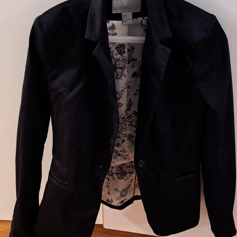 H&M musta naisten bleiseri, koko 36. Bleiserissä on pitkä hiha ja se on valmistettu kevyestä materiaalista. Sopii erilaisiin asukokonaisuuksiin ja tilaisuuksiin.