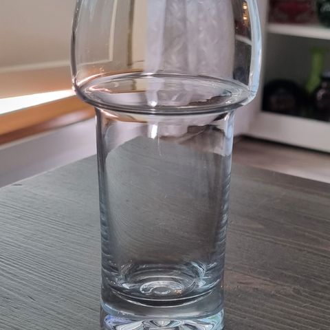 Uudenveroinen pyöreä Nuutajärven kirkas lasi maljakko ,kork.12cm,halk.13,5.