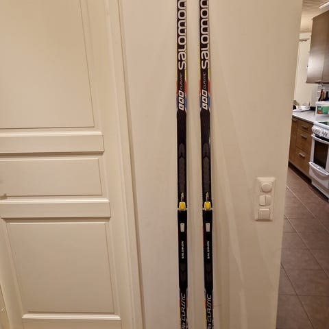 Pari kertaa käytössä olleet sukset valmiina muuttamaan uuteen kotiin.