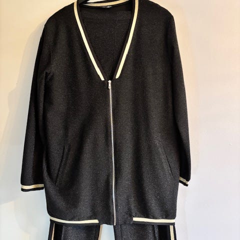 Kolmeosainen asukokonaisuus, koristeilla viimeistelty. Tyylikäs valinta toimistoon , illallisille ja muihin erityisiin tilaisuuksiin.