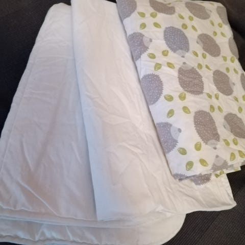 Hyväkuntoiset,sievät tyynyliinat vauvalle.korkeus n.24 cm ja pituus n .34 cm. Hinta sisältää postikulut.