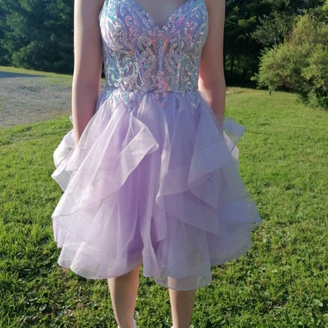 Myydään kerran päällä ollut kaunis, violetti rippimekko. Koko 6 (ollut päällä S-M kokoisella).