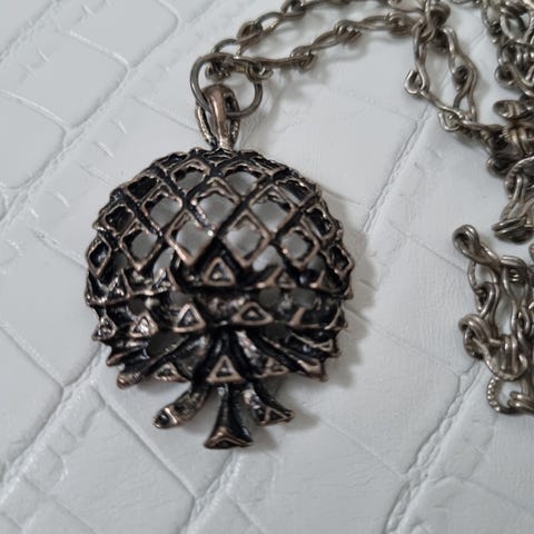 Myynnissä on kullan värinen vintage Riipus. Keskellä posliinikoriste. Pieni pala alareunasta puuttuu. Pk 2,75€ kirjeenä pahvikuoressa.