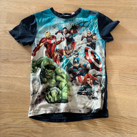 Siisti yhden pojan käyttämä Marvel supersankari t-paita. Ei ole kokolappua mutta vastaa mielestäni 128/134. Ollut meillä sen kokoisella käytössä. 10€.