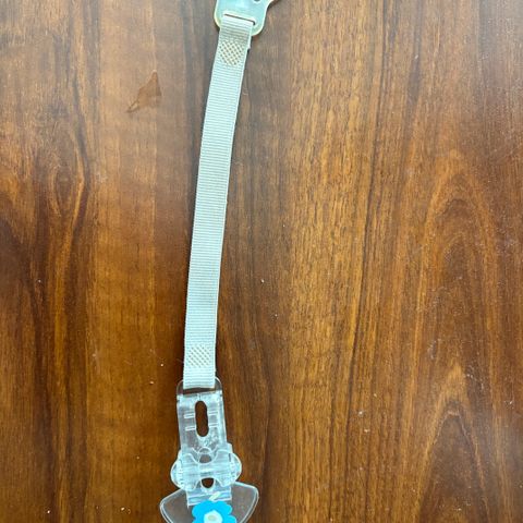 Tuttinauha leopardikuosisista silikonipalloista. Kiinnitysmekanismina silikonirengas, joka käy sekä nupilliseen että renkaalliseen tuttiin. Soljen puoleisessa nauhan solmuosassa jkv tummentumaa, muuten moitteeton käytetty kunto.