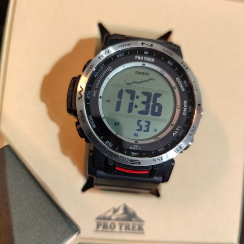 Myydään Casio Pro Trek PRW-3500-1 rannekello. Tough Solar eli lataa valosta. Positiivinen nestekidenäyttö. Triple Sensor eli ABC (altimeter, barometer, compass). Multiband 6 eli synkronoi ajan radioaalloilla. Pyörivä bezel. Mukana alkuperäinen ranneke, hang-tag ja ohjekirja. Ei laatikkoa.