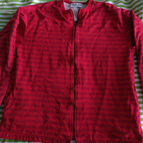 Marimekko Mika Piirainen 100% puuvillaa trikoopaita. Jonkin verran käytetty mutta täysin ehjä ja värit kirkkaat. Mitat: kainalosta kainaloon 49cm ja pituus olalta helmaan 60cm. Raitojen värit viininpunainen, vihreä, musta.