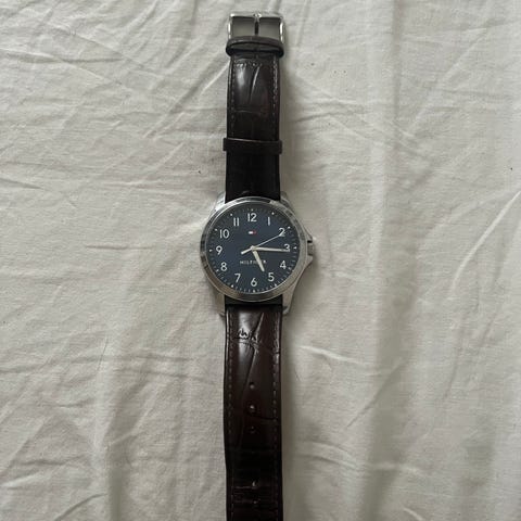 Siisti Tommy Hilfiger miesten rannekello, jossa on musta kellotaulu ja musta nahkaranneke. Kellossa on selkeät numerot ja päivämäärän näyttö. Rannekello sopii arkikäyttöön ja tarjoaa klassisen tyylin