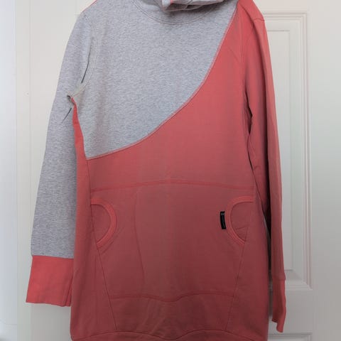 Myydään Ommellinen keltainen huppari koko M. Iso huppu joka menee edestä päällekkäin. Melko lyhyt helma. Helma ja hihansuut pelkällä saumurisaumalla. Erikoinen leikkaus, etukpl kapea ja takakpl leveä eli ns. sivusaumat tulee vaatteen etupuolelle. Kunto käytetty hyvä.
