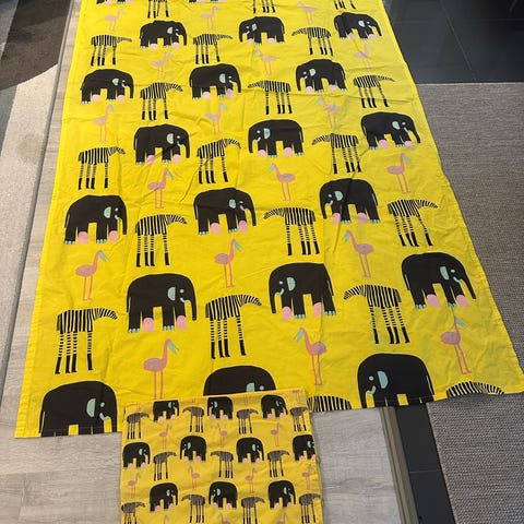 Myydään Marimekon Karkumatka -kankaasta ompelijalla ompelutettu verho, jonka leveys 138,5 ja pituus 220 cm. Alakäänteessä 10cm. Kunnossa ei huomautettavaa. Mukaan tulee pieni extrapala samaa kangasta.