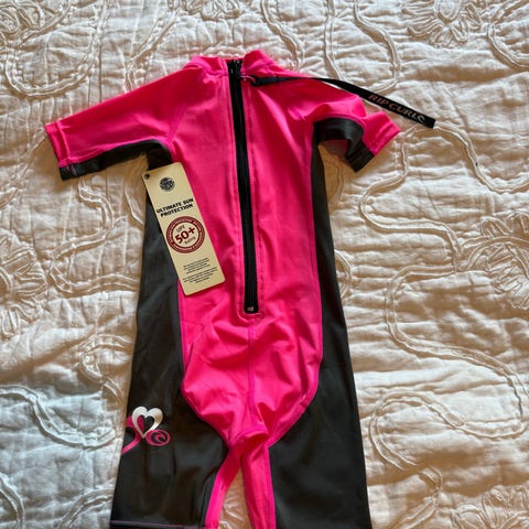 3 kertaa käytetty Arenan neopreeni-uimahaalari 1-2-vuotiaille (92 cm). Pienen pieni reikä vasemmassa olkasaumassa (kolmas kuva), kun vedin viimeisellä käyttökerralla vähän liian ronskisti lapselle päälle. Muuten kuin uusi.