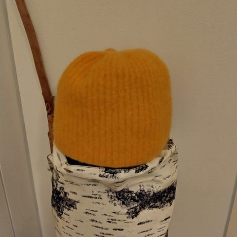 Uusi vaaleankeltainen pipo, sisältää villaa ja mohairia.