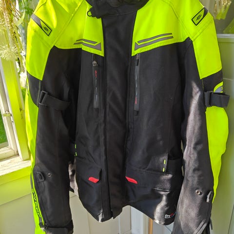Käytetty, mutta siistikuntoinen takki seuraavalle. Suojat selässä ja kyynärpäissä. Vetuketjulla avattavat tuuletusaukot rintataskujen kohdalla ja kyljissä. Irroitettava lämpökerros. Koko miesten M, mutta on pientä kokoa. Ollut käytössä M-kokoisella naisella, jolloin alle on mahtunut yksi puserokerros lisää.