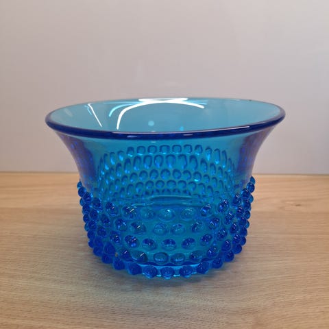 Nuutajärvi Näppyläkulho 15 cm halkaisija 9 cm korkea. Design Saara Hopea. Näitä on 2 kpl. Vanhempi kirkas taittaa aavistuksen roosaan. Hinta yhdelle kappaleelle. Nouto Vantaa tai Riihimäki.
