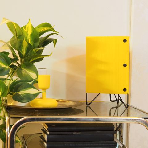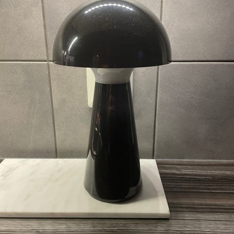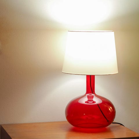Sininen Ikea "lykta" pöytävalaisin, valmistettu lasista.