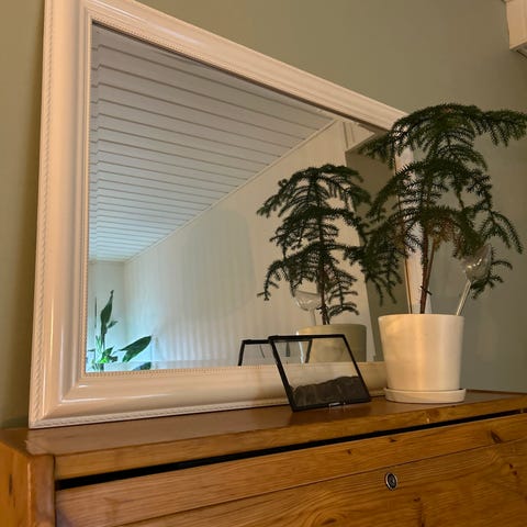 Iso hopeakehyksinen peili. Ehjä. Kiiltävä.