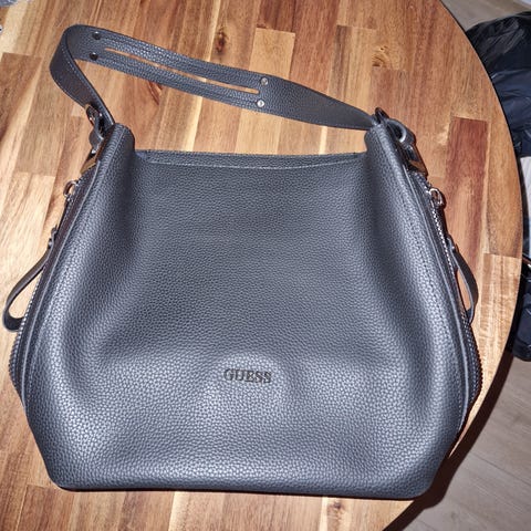 Uudenveroinen Guess laukku. Vetoketju suljenta, tuplahihnat. Sisällä yksi vetoketjullinen tasku ja korttitaskut. Koko n 30x25cm.