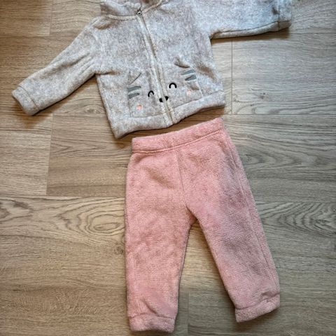 Pörrötakki, jonka hupussa korvat. Väriltä valko-musta. Koko 80. Hyvässä kunnossa. Kissatalous.